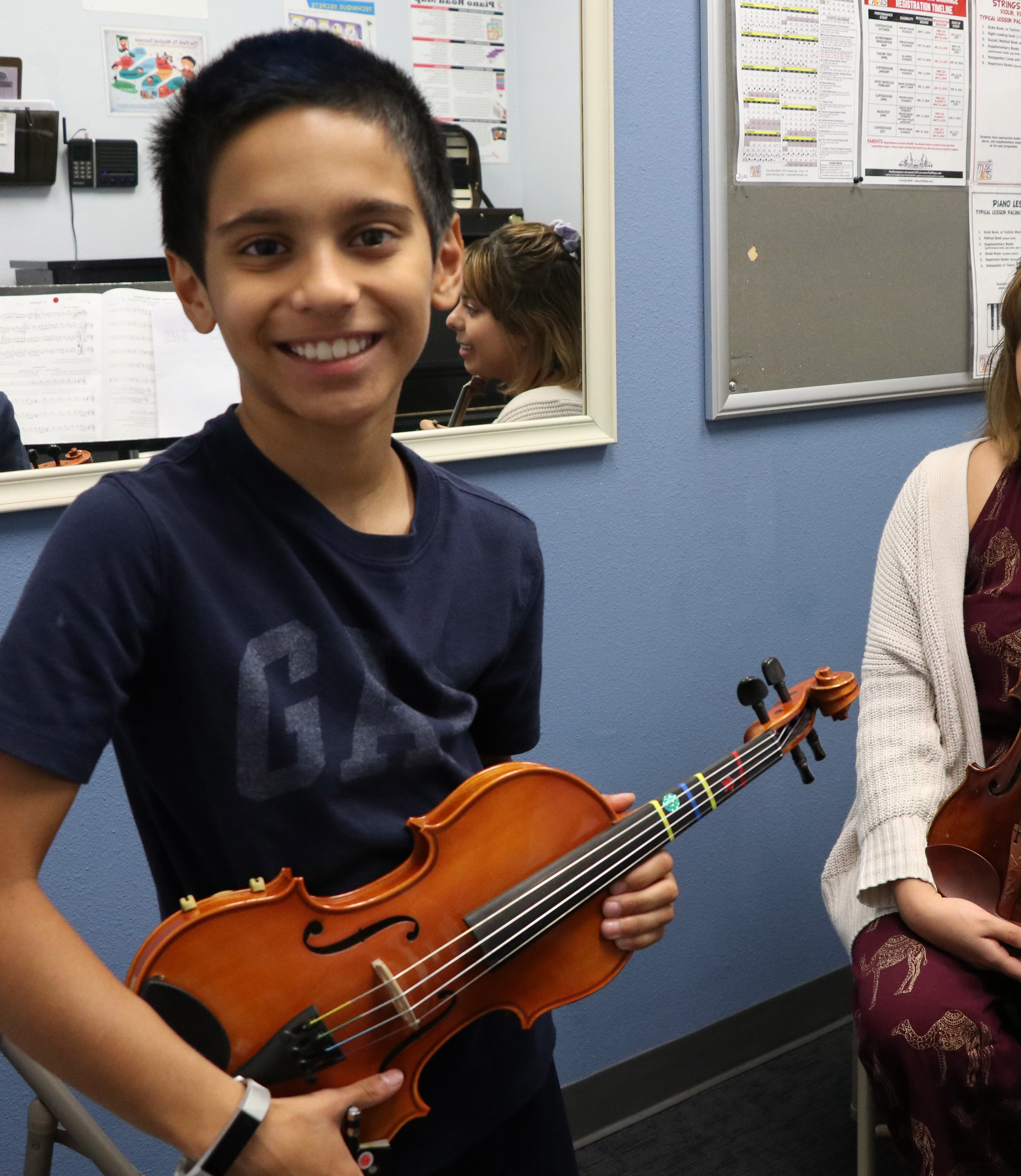 Our string instructors will teach all styles of music, from learning to play by ear to reading music. If you want to play classical music or the fiddle, we have a teacher for you. Students can be as young as 5 years old, or younger with the teacher's approval. Our students love learning the fundamentals, as well as incorporating your favorite songs into their lessons. Our violin teachers have friendly personalities and love working with children and teens and adults!.